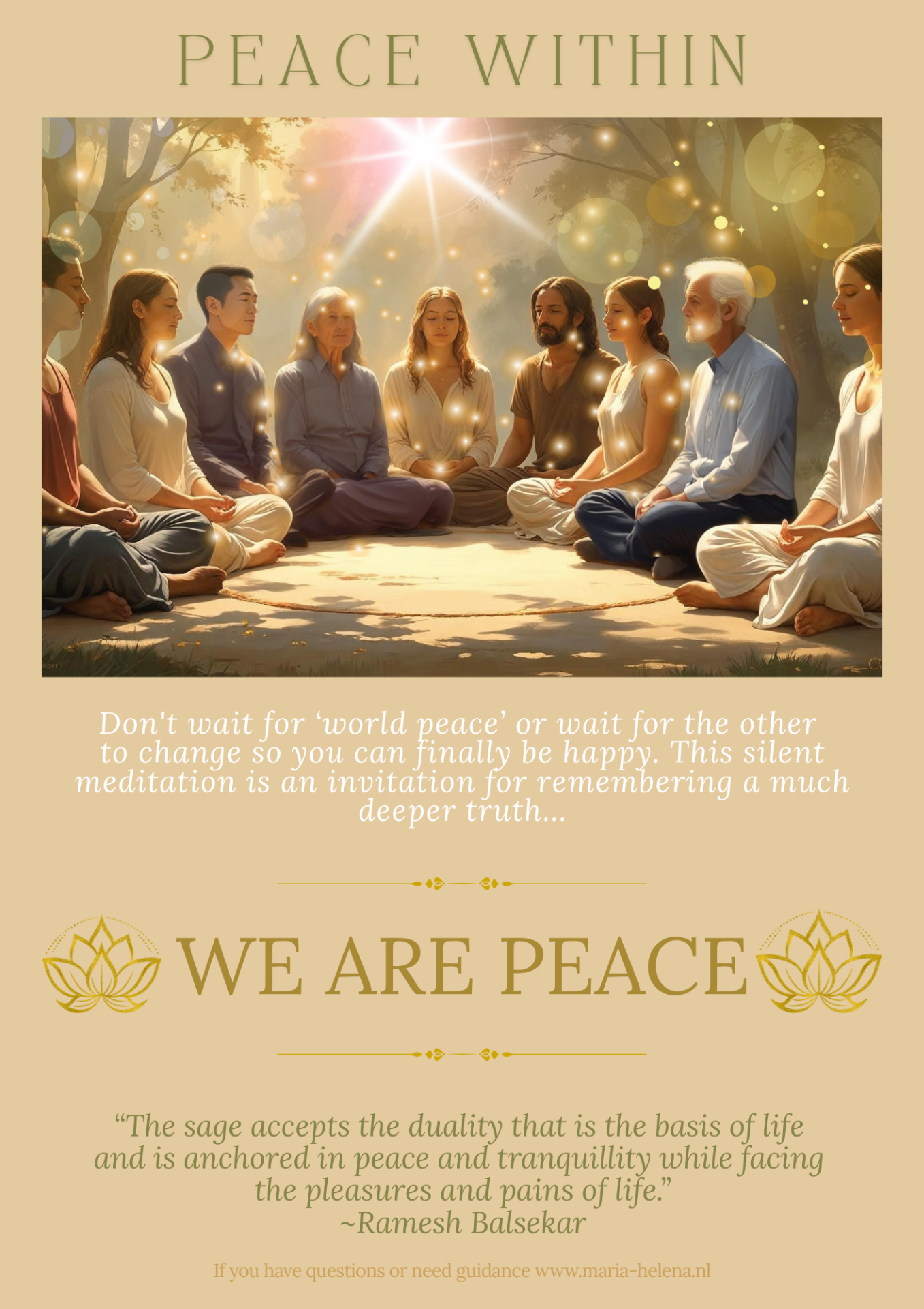 We duiken diep in dit gevoel I Am en onderzoeken in de stilte alles wat zich aandient of opdringt vanuit onze persoonlijke programma's, zowel die van ons lichaam als die van onze mind.
